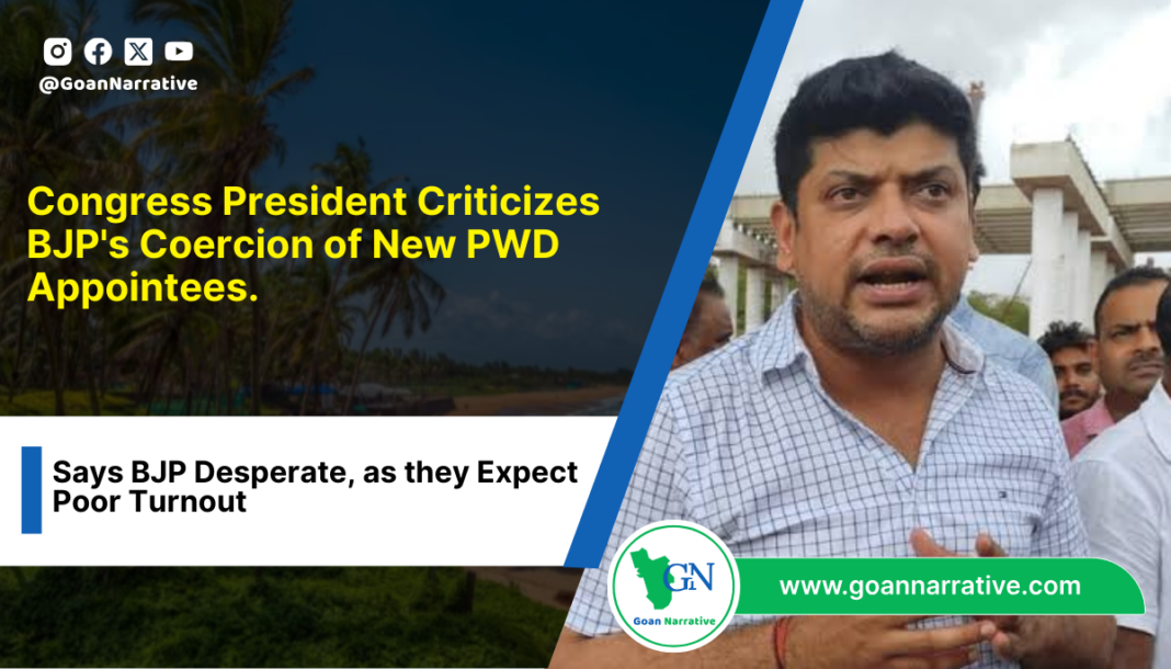 Congress President Amit Patkar criticizes Dr. Pramod Sawant for allegedly coercing newly appointed TA & JE of PWD to attend a BJP propaganda meeting with parents and collect their appointment letters.