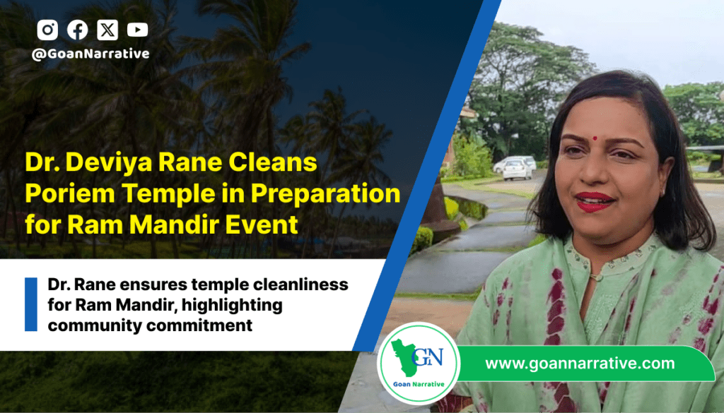 Dr. Deviya Rane took the initiative to clean the temple in Poriem in anticipation of the upcoming Ram Mandir event. Displaying dedication and community spirit, Dr. Rane engaged in the cleaning process to ensure that the temple is well-maintained and welcoming for the auspicious occasion of the Ram Mandir event. This gesture reflects a commitment to the community and the cultural significance of the upcoming event.