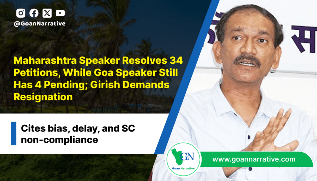 Congress Leader Girish Chodankar Calls for Resignation of Goa Speaker Ramesh Tawadkar Over Delay in Disposing of Disqualification Petitions. Criticizes Tawadkar for Allegedly Favoring BJP and Ignoring Supreme Court’s Directive. Highlights Contrasting Actions of Maharashtra Speaker Who Resolved 34 Petitions in 18 Months.
