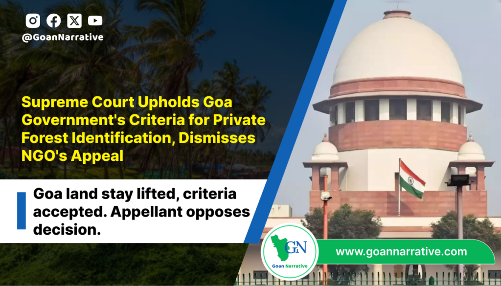 The Supreme Court has dismissed the appeal filed by the NGO Goa Foundation challenging the National Green Tribunal’s order and supporting the Goa government’s criteria for identifying private forests.