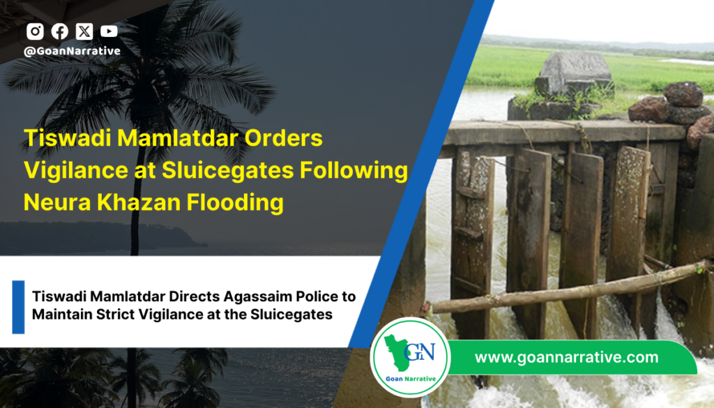 Following reports of flooding at Neura Khazan, both in the press and on social media, Tiswadi Mamlatdar has swiftly responded by directing Agassaim Police to maintain strict vigilance at the sluicegates and khazan bandhs.
