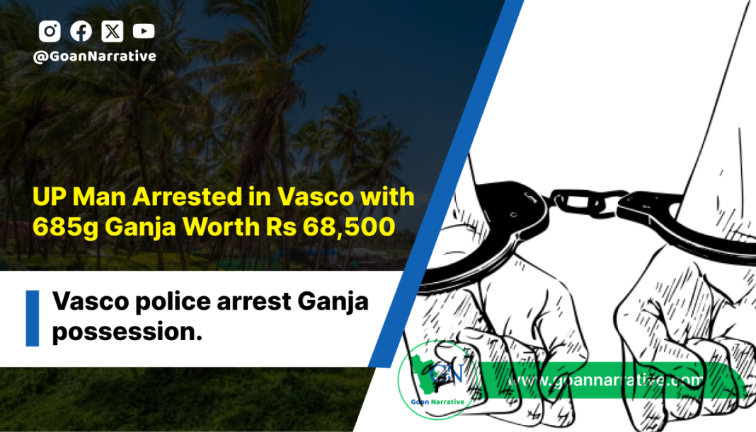Vasco police arrested a 30-year-old man, Qutubuddin Abbas Ali Ansari, originally from Uttar Pradesh, for the possession of 685 grams of Ganja, with an estimated street value of Rs 68,500