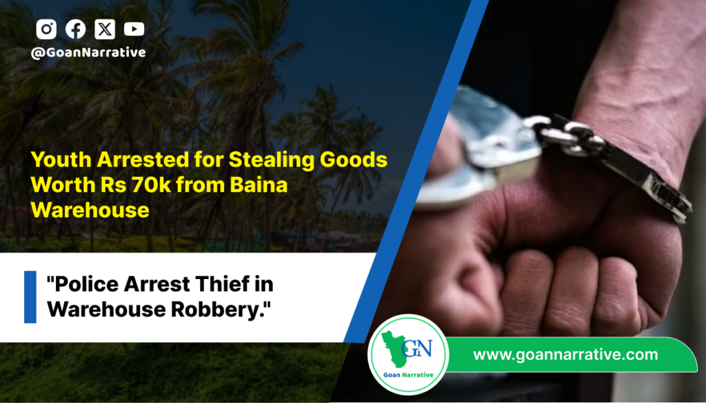 Mormugao police apprehended a 24-year-old individual, Nagraj Pudajali from Shantinagar, Vasco, on charges of stealing items valued at Rs 70,000 from a warehouse located at Baina.
